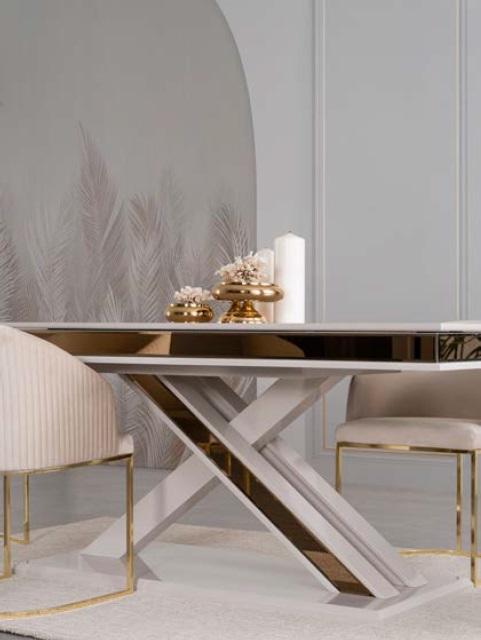 Entdecken Sie unsere stilvolle Säulen Tisch Essgruppe, bestehend aus einem 180cm Esszimmer-Tisch, erweiterbar auf 220cm, und 6 modernen Lehnstühlen. Die Maße des Tisches betragen ca. 180 x 95 x 77 cm, während die Stühle ca. 58 x 65 x 83 cm groß sind. Hergestellt aus hochwertigem Holz und Edelstahl, sorgt diese Essgruppe für ein modernes Ambiente in Ihrem Esszimmer. Die Farbe entspricht der Abbildung, aber auf Anfrage sind auch andere Farben möglich. Ergänzen Sie Ihr Zuhause mit dieser zeitlosen Essgruppe von B2B Moebel und genießen Sie stilvolle Mahlzeiten mit Familie und Freunden.