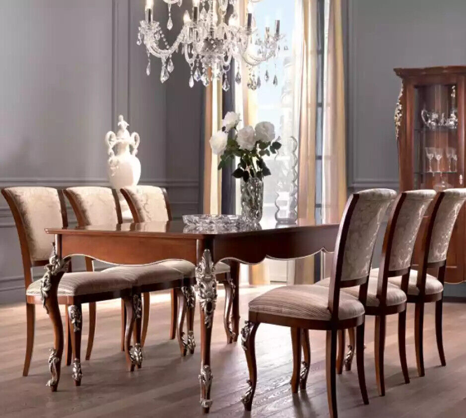 Entdecken Sie das exklusive Esszimmer Set von Giuliacasa aus Italien! Dieses luxuriöse Set besteht aus einem eleganten Esstisch und 6 stilvollen Stühlen. Der Esstisch hat die Maße ca. 200 x 100 x 80 cm und ist mit 2 ausziehbaren Einsätzen versehen. Die Stühle sind ca. 54 x 59 x 101 cm groß und bieten höchsten Sitzkomfort. Gefertigt aus hochwertigem Holz und in einem eleganten Design, ist dieses Esszimmer Set perfekt für gemütliche Mahlzeiten im Kreis der Familie oder für gesellige Abende mit Freunden. Holen Sie sich ein Stück italienische Eleganz in Ihr Zuhause! Maße: Esstisch: Länge: ca. 200 cm, Höhe: ca. 80 cm, Breite: ca. 100 cm. Stühle: Länge: ca. 54 cm, Höhe: ca. 101 cm, Breite: ca. 59 cm. Farbe: wie abgebildet. Material: Holz.