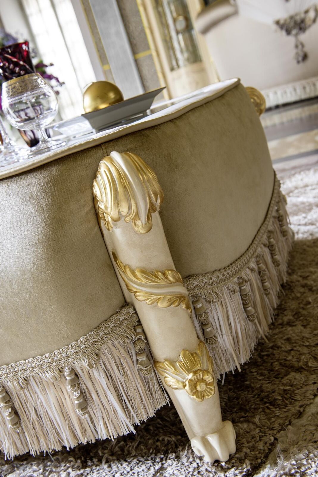 Couchtisch im klassischen Stil, Couchtisch in Goldfarbe, Couchtisch