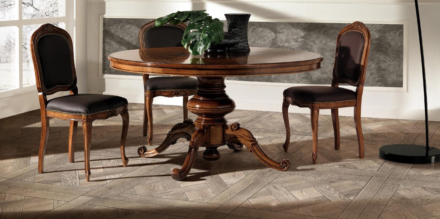 Entdecken Sie den klassischen Esstisch aus dem Hause Vaccaricavgiovanni! Dieser runde Tisch im Barock- und Rokoko-Stil besticht durch italienisches Möbeldesign und Handwerkskunst. Hergestellt aus hochwertigem Holz, verleiht dieser Tisch Ihrem Esszimmer einen Hauch von Luxus. Mit Maßen von ca. Ø 150 x 79 cm bietet der Tisch genügend Platz für gemütliche Mahlzeiten in stilvollem Ambiente. Bestellen Sie jetzt das Möbelstück und erwecken Sie Ihr Zuhause mit italienischem Flair zum Leben!