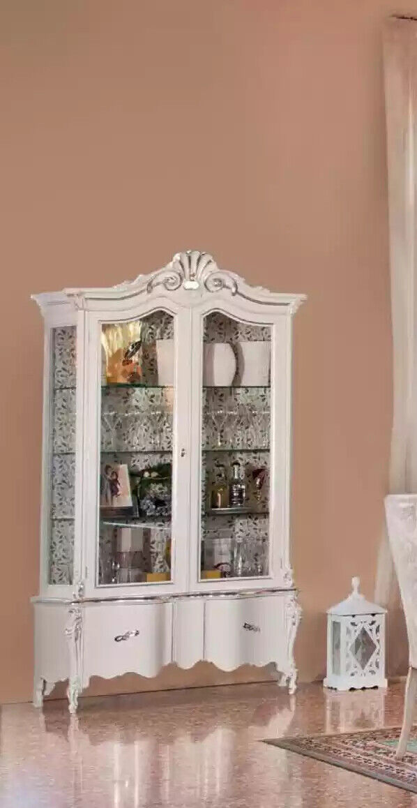 Showcase Italienische Wohnzimmermöbel Schrank Weißes Glas Vitrinen Vitrine