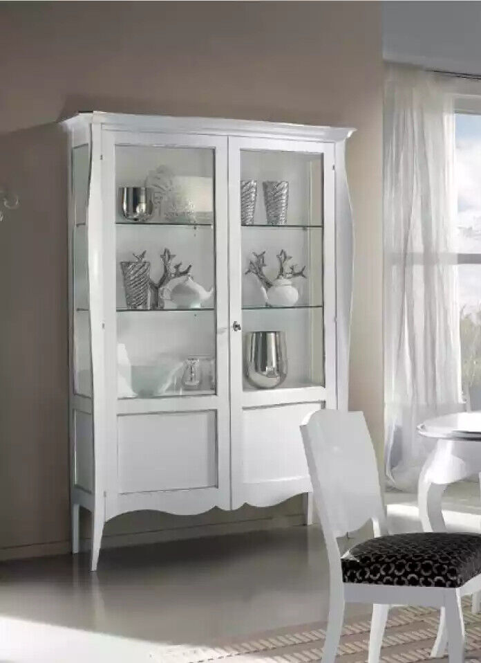 Vitrine Glasschrank Weiß Luxus Italienische Möbel Schränke Wohnzimmer