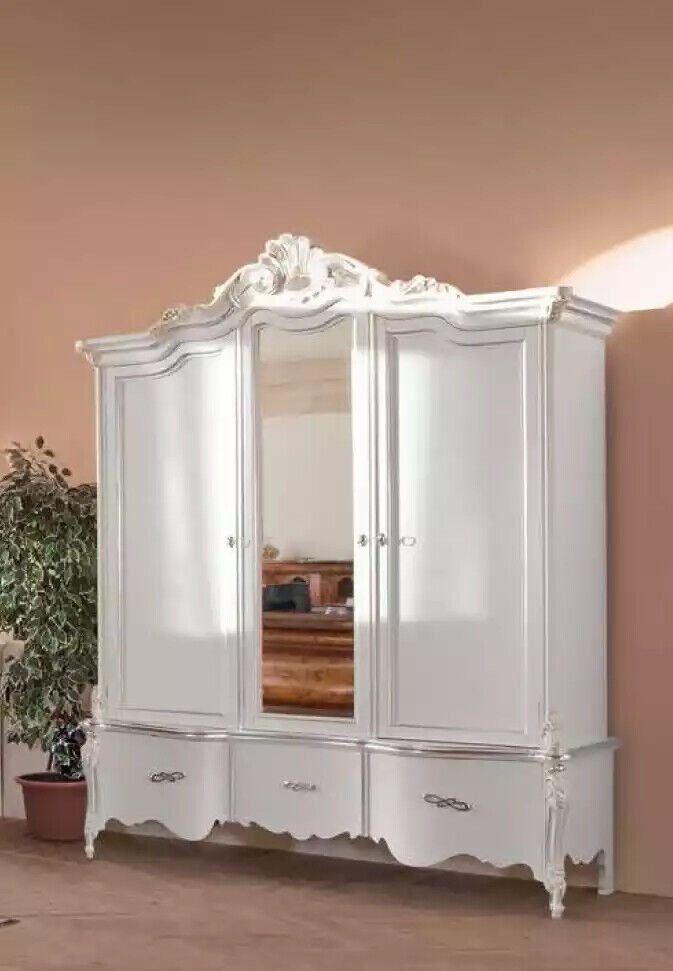 Weißer Kleiderschrank Massivholz Möbel Schlafzimmer Designer Glastüren