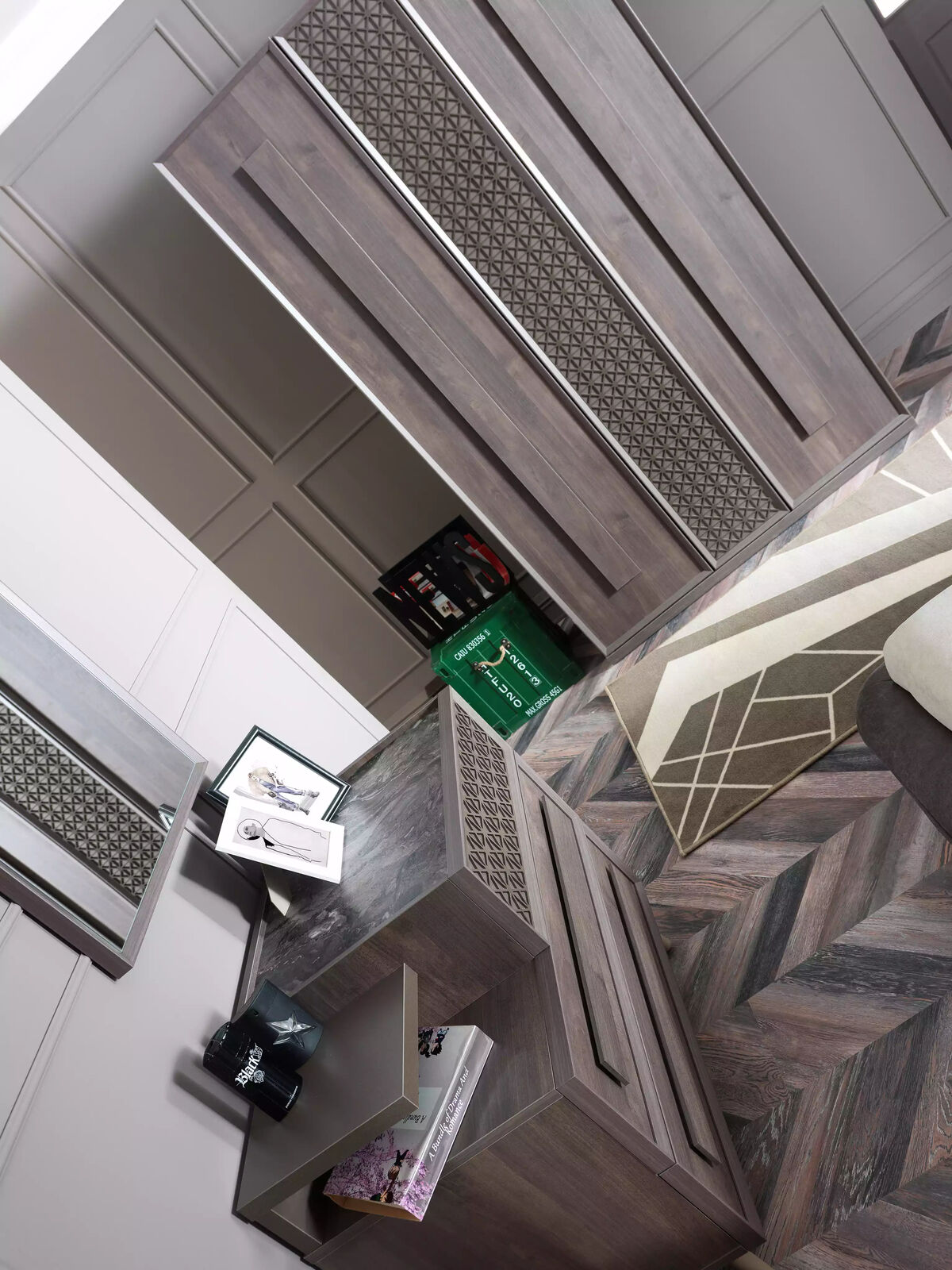 Garnitur Polsterbett Jugendbett Bettrahmen Bett Set 5tlg Holz Grau Neu