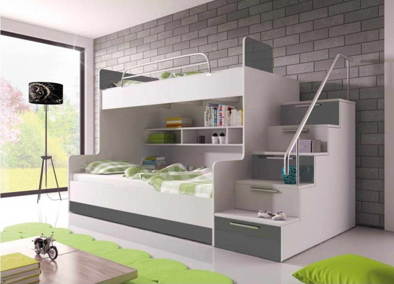 Graues Doppelstockbett Etagen Bett Kinderzimmer Betten Hochbett Hochglanz Möbel