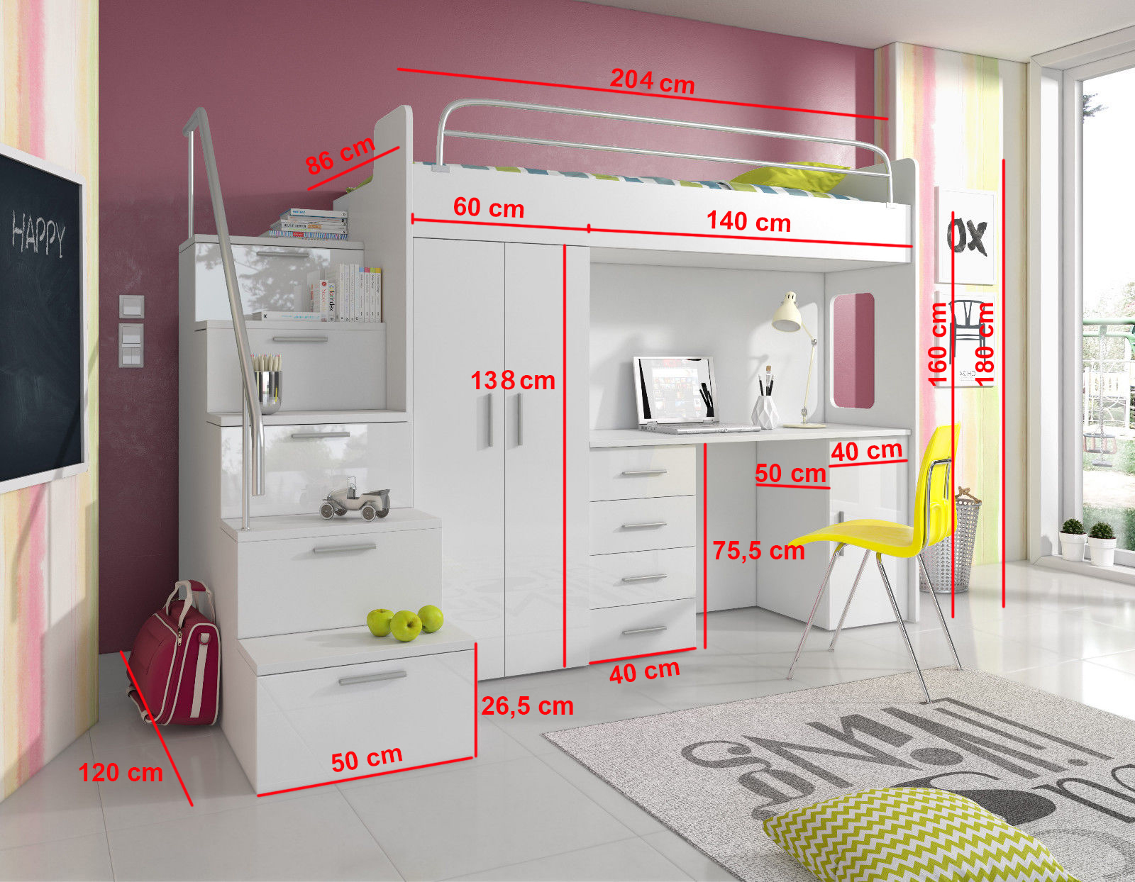 Jugendbett Komplett Schlafzimmer Design Kinder Bett Betten Schrank Tisch GRAU