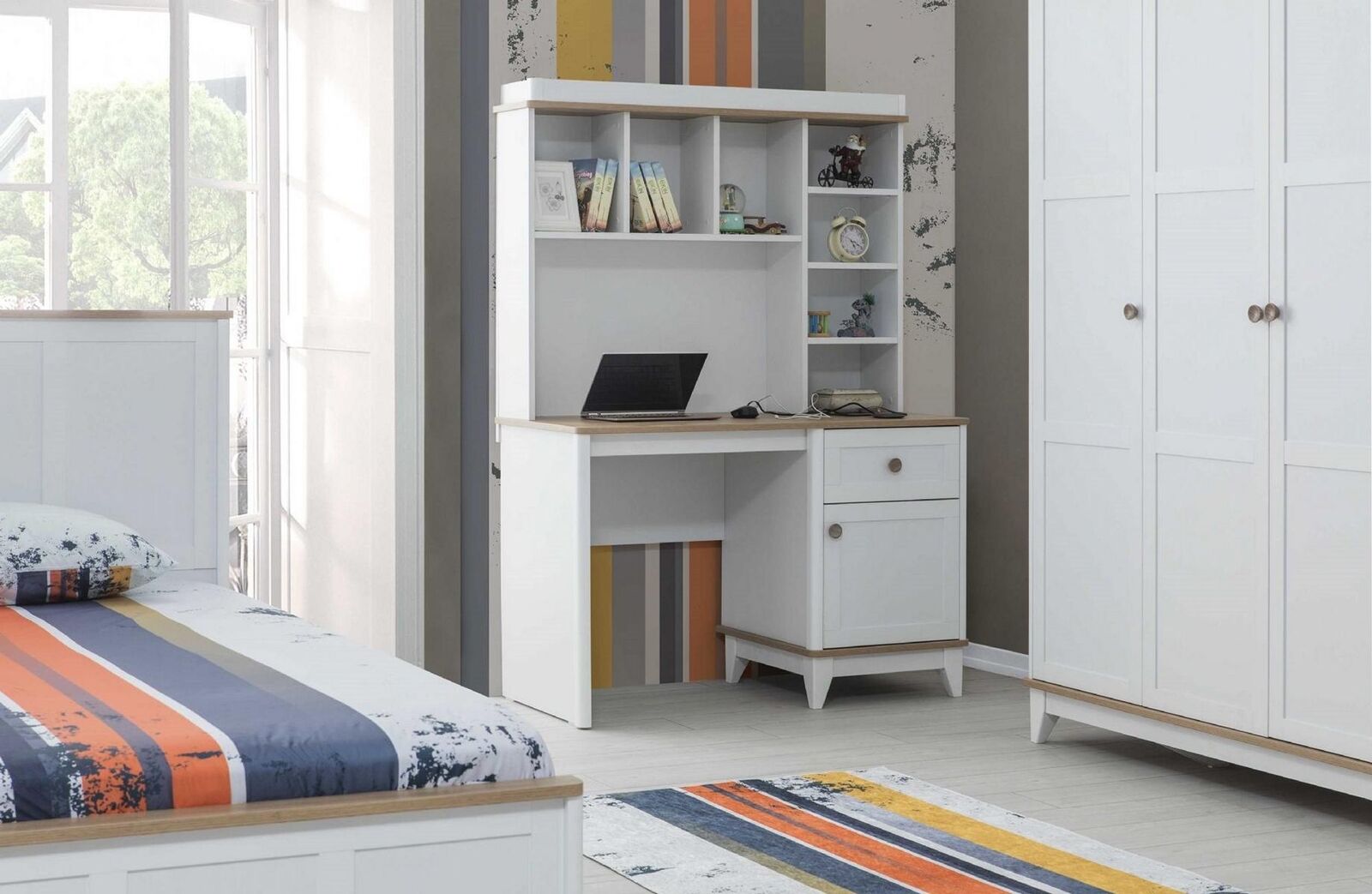 Holztisch Schreibtisch Regale Computertisch Holz Weiß Kinderzimmer