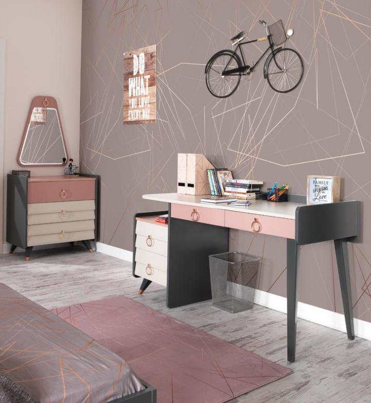 Schlafzimmer 6tlg Bett Nachttisch Kleiderschrank Kommode Spiegel Schreibtisch