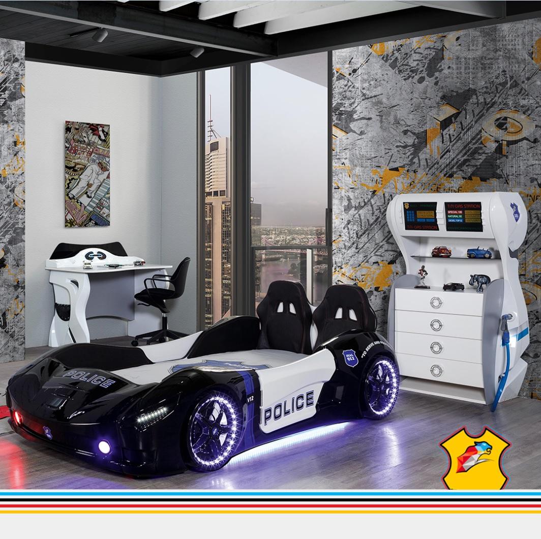 Polizei Auto Kinder Schlafzimmer Kinderbett Kommode Schreibtisch 3tlg