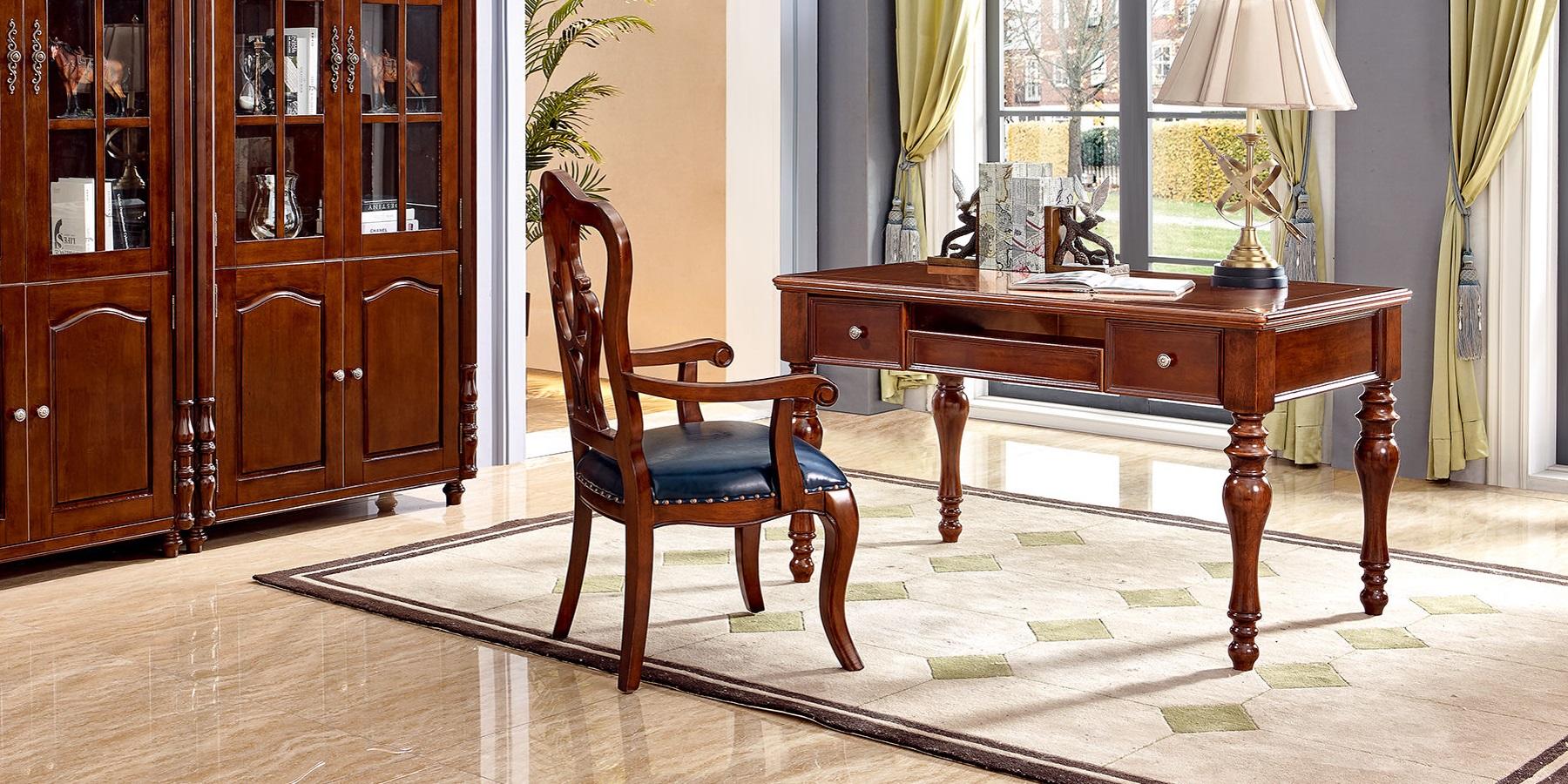 Erwerben Sie stilvolle Büromöbel für Ihr Arbeitszimmer von B2B Moebel! Dieser Schreibtisch und Armlehnenstuhl werden aus hochwertigem Holz gefertigt und bieten klassisches Design für Ihr Büro. Der Schreibtisch hat Maße von ca. 138 x 80 x 78 cm, während der Armlehnenstuhl ca. 60 x 50 x 110 cm groß ist. Wählen Sie die Farbe ganz nach Ihrem Geschmack! Perfekt für ein elegantes und komfortables Arbeitsumfeld. Investieren Sie in Qualität und Stil mit diesen zeitlosen Möbeln.