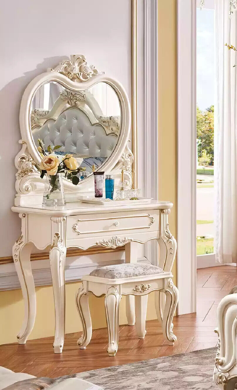 Klassischer Schminktisch Hocker Designer Holzmöbel Set Schlafzimmer 2tlg