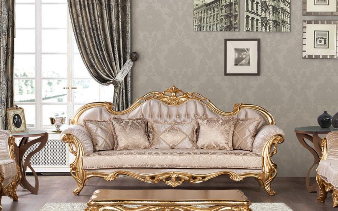 Erleben Sie den Luxus und den zeitlosen Stil mit unserem Dreisitzer-Sofa aus der B2B Moebel Kollektion! Dieses elegante Möbelstück im Barock-Rokoko-Stil wurde mit Liebe zum Detail und handwerklichem Geschick gefertigt. Die geschwungenen Formen und die filigranen Schnitzereien verleihen Ihrem Wohnzimmer eine königliche Note. Das hochwertige Sofa besteht aus Stoff in der Farbe wie abgebildet und bietet mit seinen Maßen von ca. 235 x 80 x 123 cm ausreichend Platz zum Entspannen und Wohlfühlen. Ob in Orchidee, Mauve, Schokolade oder einer Vielzahl anderer Farben - wir bieten eine breite Palette an Farboptionen für Ihren individuellen Geschmack. Ergänzen Sie Ihre Einrichtung mit diesem einzigartigen 3-Sitzer-Sofa und tauchen Sie ein in die Welt des Luxus und des Komforts. Bestellen Sie jetzt und lassen Sie sich von B2B Moebel begeistern!