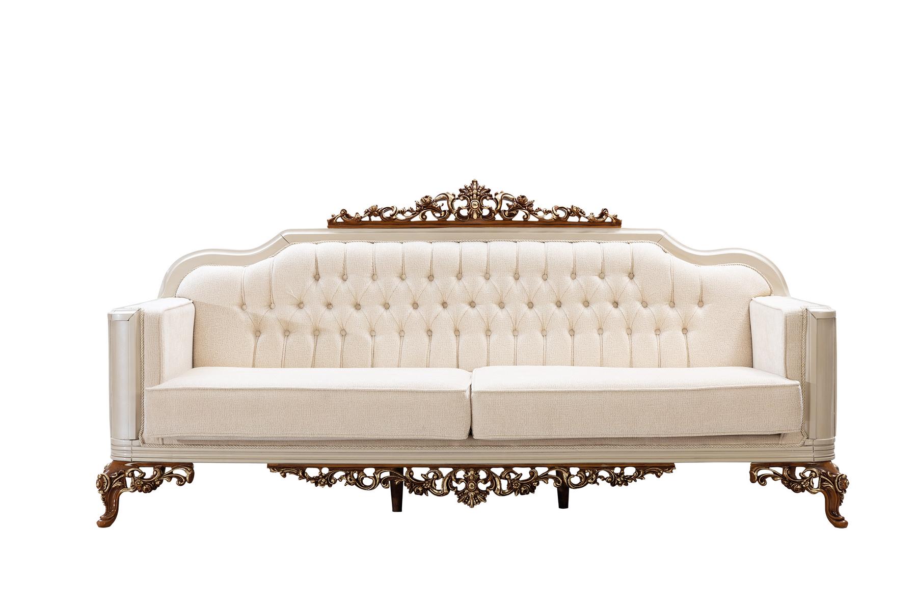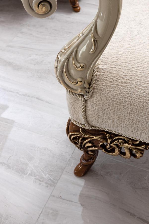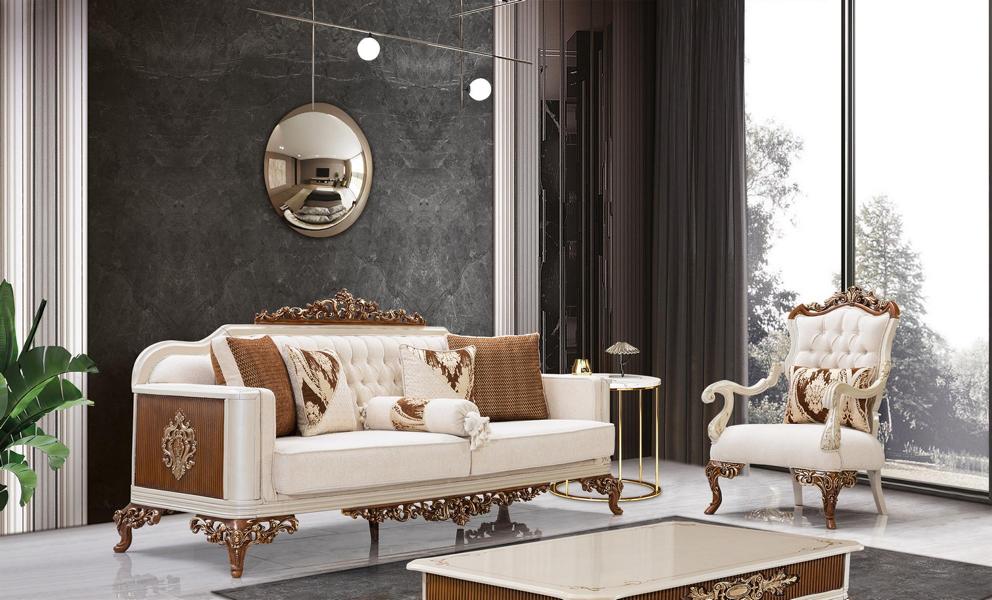 Erleben Sie Luxus und Eleganz mit unserer exquisiten Sofagarnitur 3+1+1+1 inklusive Couchtisch aus edlem Stoff im Barockstil. Die Garnitur besteht aus 2 Sofas mit jeweils 3 Sitzplätzen und 2 Sesseln, alle mit einer komfortablen Sitzhöhe von ca. 44 cm und einer großzügigen Sitztiefe von ca. 56 cm. Der majestätische Couchtisch vervollständigt das Set und bietet mit seinen Maßen von ca. 120 x 72 x 49 cm genügend Platz für Ihre Wohnaccessoires. Hergestellt aus hochwertigem Holz und Textil, garantiert diese Garnitur Langlebigkeit und Komfort. Erhältlich in der abgebildeten Farbe und auf Anfrage in weiteren Farben. Bringen Sie mit dieser Sofagarnitur einen Hauch von Luxus in Ihr Zuhause!