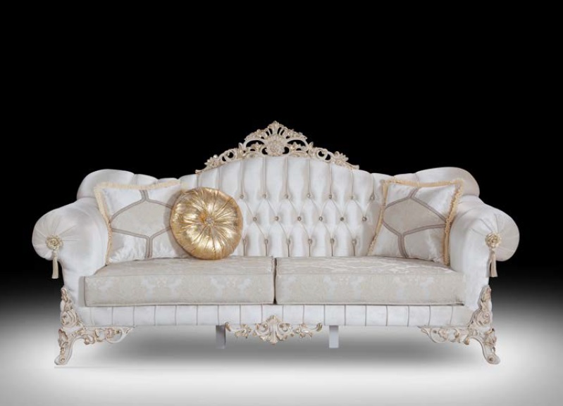 Luxuriöse Sofagarnitur für das Wohnzimmer im klassischen Stil in der Farbe Weiß