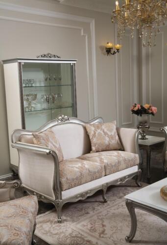 Erwecken Sie Ihr Wohnzimmer mit dieser eleganten 5-teiligen Sofagarnitur zum Leben! Die klassische Möbelkollektion von B2B Moebel bietet Ihnen zeitlose Stücke in verschiedenen Stilen, von Barock bis Louis XVI. Jedes Stück ist aus edlem Holz gefertigt und in einer Vielzahl von Farben erhältlich – von Burgunderrot über Schokolade bis hin zu Anthrazit. Das Set besteht aus einem komfortablen 3-Sitzer Sofa, einem gemütlichen 2-Sitzer Sofa, einem stilvollen Sessel, einem geräumigen Couchtisch und einem praktischen Beistelltisch. Die geschwungenen Formen und filigranen Schnitzereien verleihen Ihrem Zuhause einen Hauch von Eleganz. Die Maße sind wie folgt: - Sofa 3 Sitzer: ca. 210 x 80 x 107 cm - Sofa 2 Sitzer: ca. 160 x 80 x 107 cm - Sessel: ca. 80 x 70 x 112 cm - Couchtisch: ca. 120 x 90 x 45 cm - Beistelltisch: ca. 55 x 55 x 55 cm Lassen Sie sich von der Farbe wie abgebildet begeistern und genießen Sie die Gemütlichkeit dieser Sofagarnitur aus hochwertigem Holz. Bringen Sie mit B2B Moebel klassischen Stil in Ihr Zuhause!
