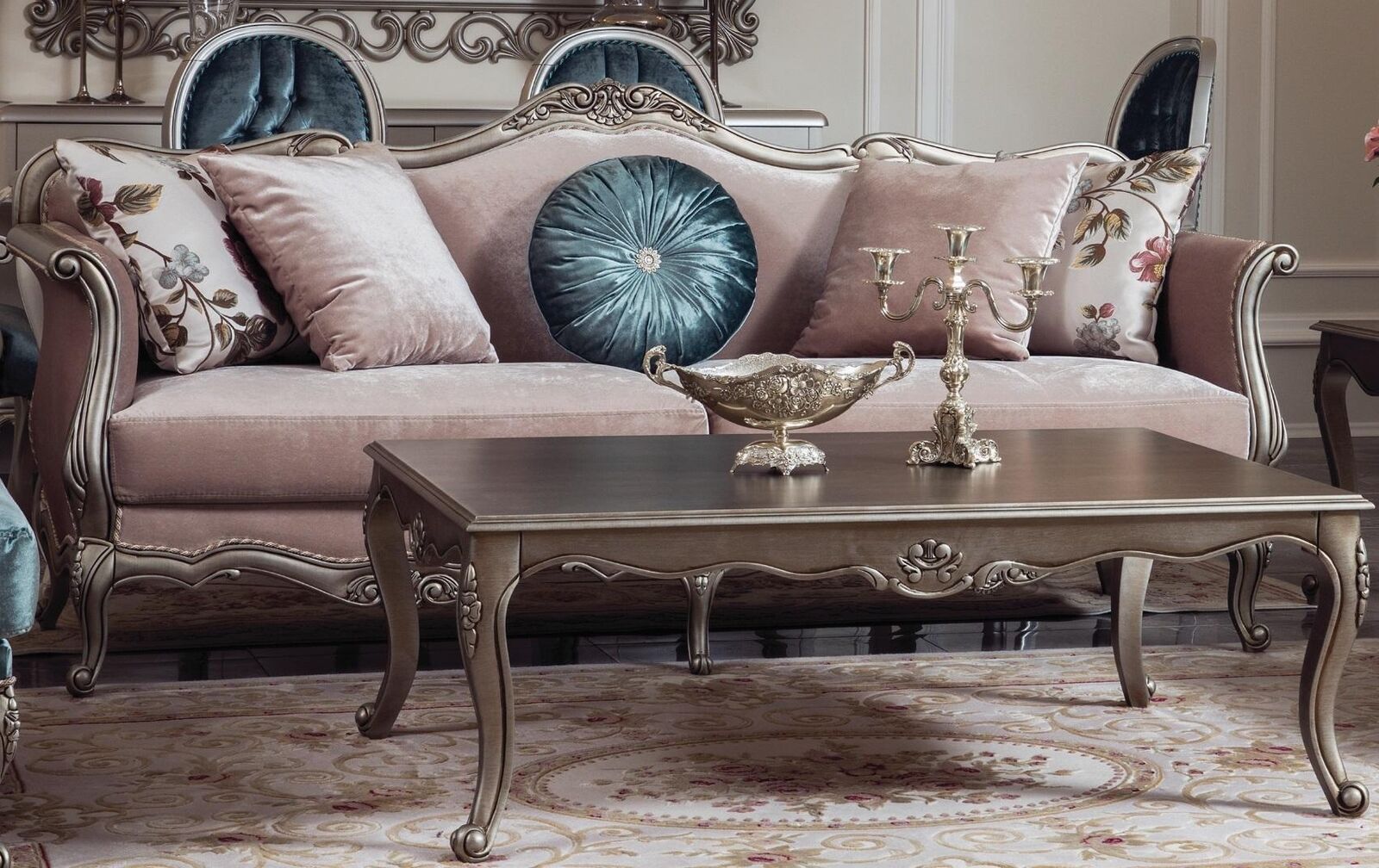 Holz Couchtisch Luxus Kaffeetisch tisch Design Tisch Wohnzimmer Silber