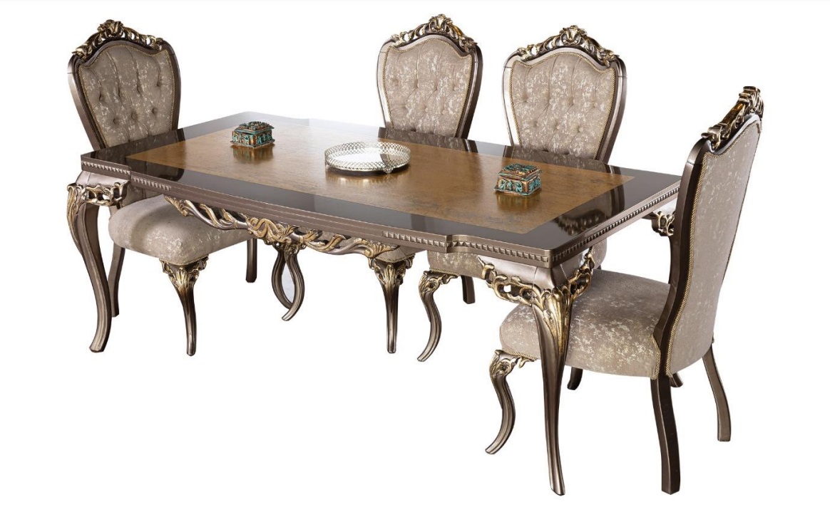 Erwecken Sie den Charme vergangener Zeiten in Ihrem Zuhause mit unserem klassischen Esstisch aus Massivholz mit aufwendigen Verzierungen. Hergestellt aus edlem Holz und in elegantem Design, wird dieser Esstisch zum Herzstück Ihrer Esszimmermöbel. Die Maße von ca. 200 x 100 x 83 cm bieten ausreichend Platz für gemütliche Mahlzeiten mit Familie und Freunden. Die filigranen Schnitzereien verleihen dem Tisch einen Hauch von Eleganz und bringen eine traditionelle Note in Ihren Essbereich. Holen Sie sich diesen zeitlosen Klassiker jetzt nach Hause und verleihen Sie Ihrem Esszimmer einen Hauch von Luxus.
