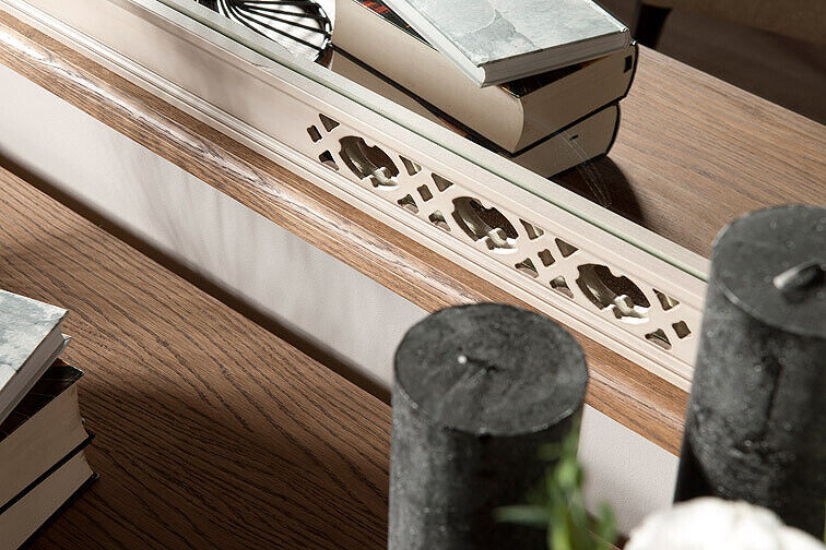 Rückwand & Einlegeböden: MDF (Mittledichte Holzfaserplatte), funiert & lackiert