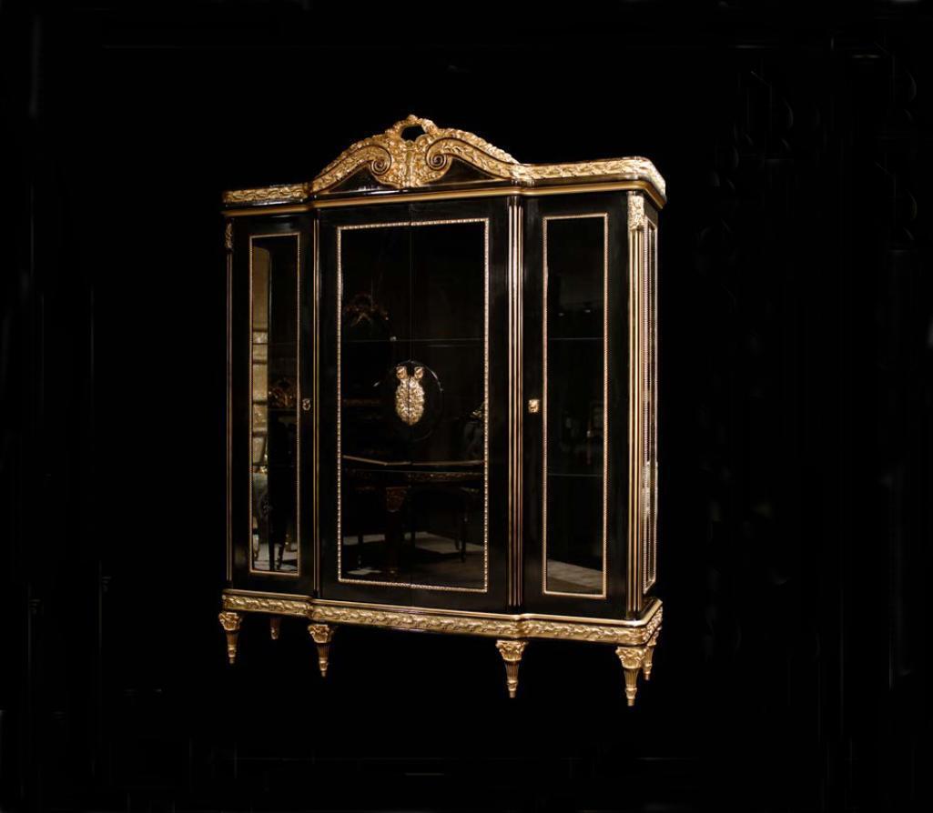 Schwarze Klassische Esszimmergarnitur Esstisch 4x Stühle Vitrine 7tlg