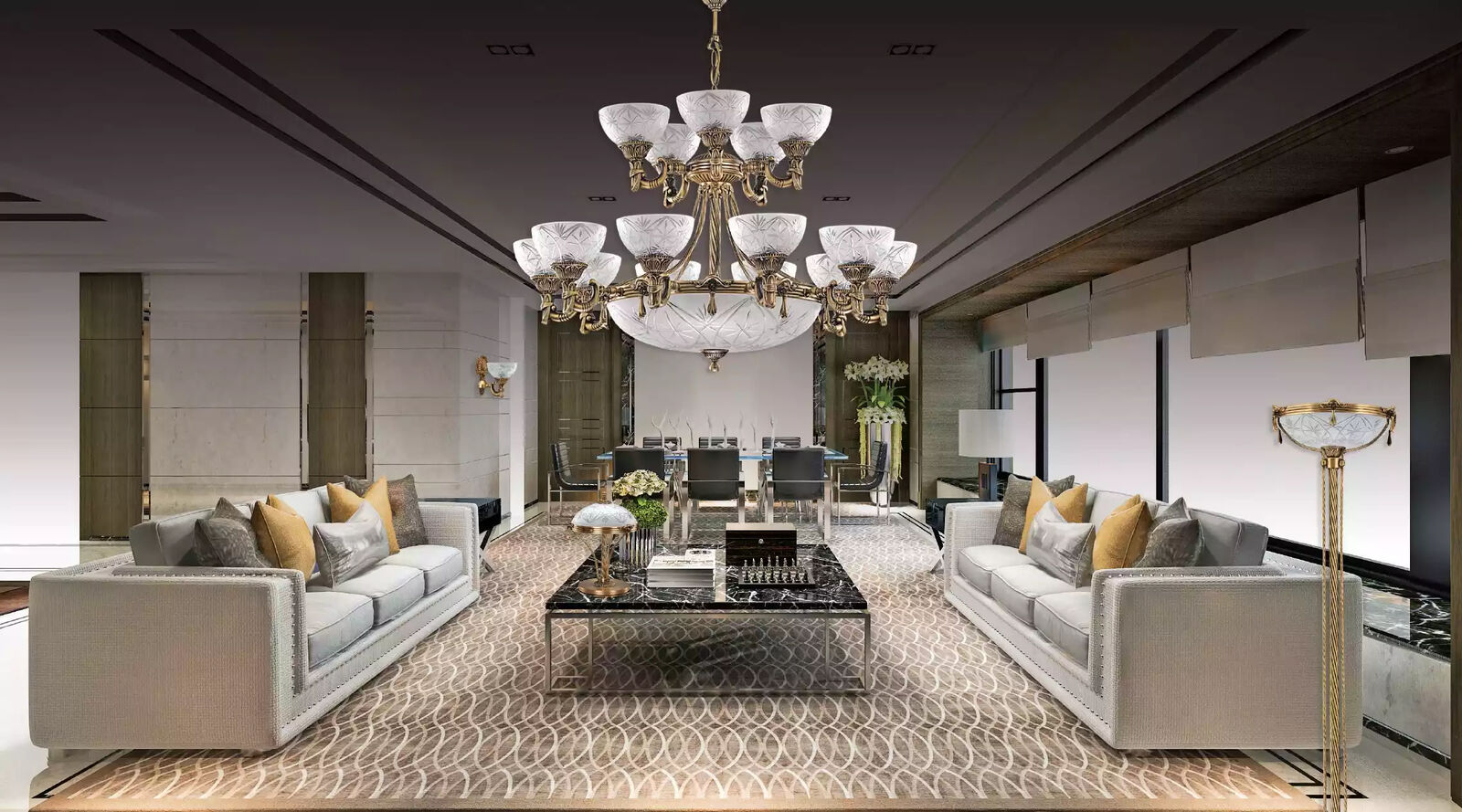 Erleuchten Sie Ihr Zuhause mit Stil dank dieser atemberaubenden Hängeleuchte, die ein wahrer Blickfang in jedem Raum ist! Diese exquisite Deckenleuchte aus Brass-Zinc Alloy und handgefertigtem Glas besticht durch ihr elegantes Design und ihre hochwertige Verarbeitung. Mit 15 Lampenfassungen (E27) sorgt sie für eine helle und einladende Beleuchtung. Das Modell BS.3038-52-15 beeindruckt nicht nur mit seinen Maßen von 94 x 95 cm, sondern auch mit seinem glamourösen Kronleuchter-Stil. Perfekt für moderne Einrichtungen, wird diese Kristalllampe ohne Leuchtmittel geliefert und ist nicht dimmbar. Ein CE-Prüfzeichen garantiert die Qualität und Sicherheit dieser Deckenleuchte. Bringen Sie mit dieser Deckenlampe von B2B Moebel Glanz in Ihr Zuhause und setzen Sie ein Statement!