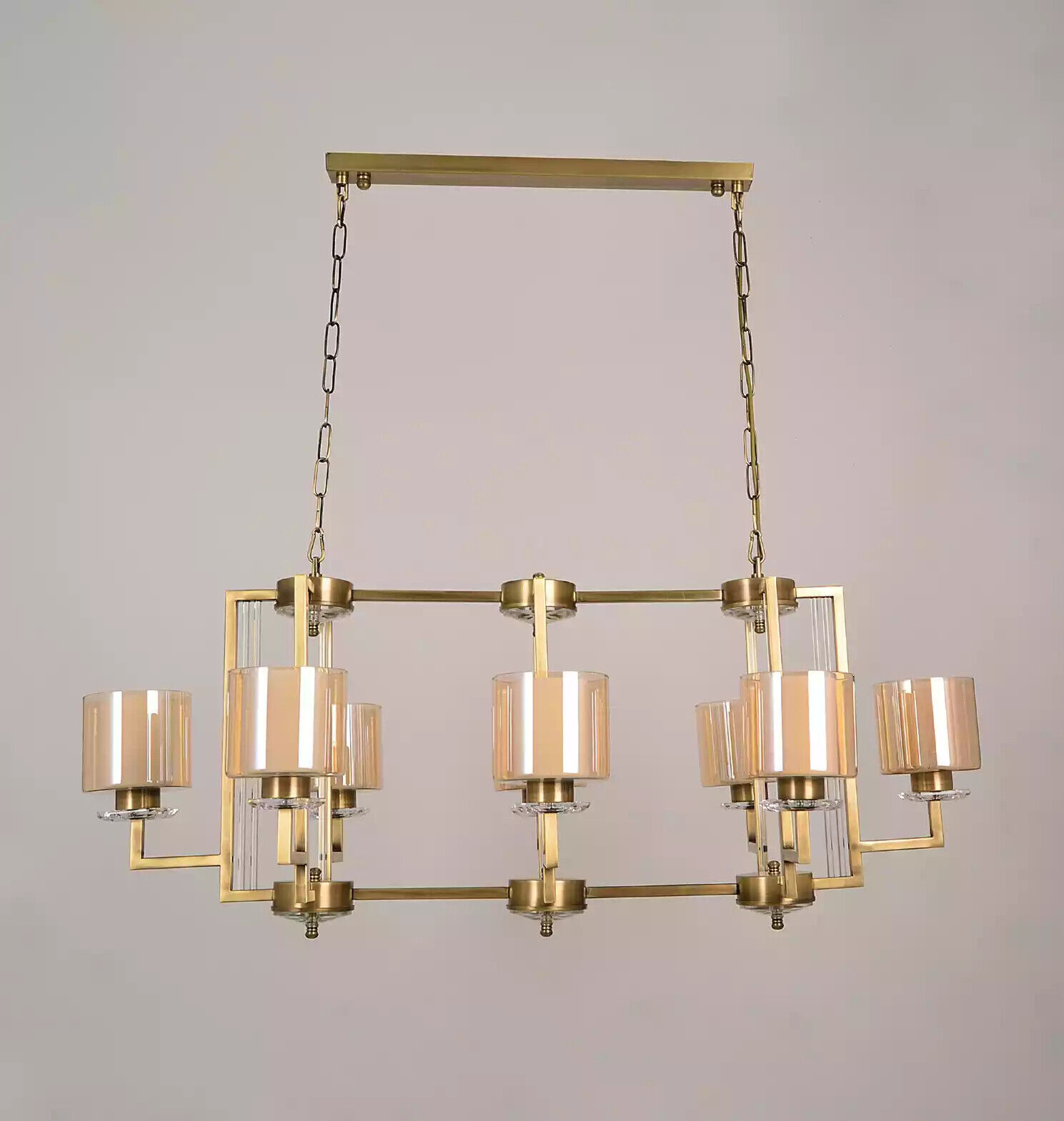 Suchen Sie nach einer stilvollen Deckenlampe, die Ihrem Zuhause einen Hauch von Eleganz verleiht? Dann ist die Lange Tisch Lampe Leuchte genau das Richtige für Sie! Hergestellt aus hochwertigem Metallsockel und Luster Glas, ist diese Pendelleuchte von B2B Moebel mit 8 Lampenfassungen ausgestattet, die für helles Licht sorgen. Mit einem Durchmesser von 105-55 x 90 cm passt sie perfekt in Ihr Wohnzimmer oder Esszimmer. Die Deckenleuchte verfügt über das CE-Prüfzeichen und wird ohne Leuchtmittel geliefert. Bringen Sie stilvolles Licht in Ihr Zuhause mit dieser wunderschönen Deckenlampe!