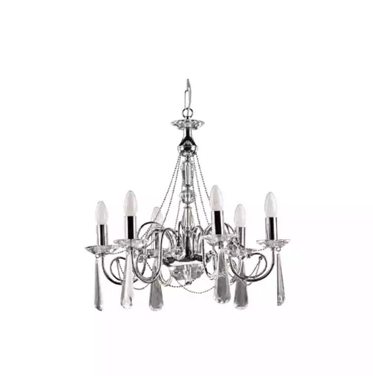 Entdecken Sie die atemberaubende Silber Lüstern Hängende Kronenlampe Kronleuchter Prunklampe Modern Art von B2B Moebel! Mit einem Durchmesser von 58 cm und einer Höhe von 90 cm ist dieses Modell BS.0703-51-06 aus Metall und Kristall gefertigt. Die Deckenleuchte verfügt über 6 Lampenfassungen (E14) und bietet ein elegantes Design, das jeden Raum zum Strahlen bringt. CE-geprüft, jedoch ohne Leuchtmittel und Dimmer enthalten. Machen Sie Ihr Zuhause mit dieser wunderschönen Kronleuchter zum strahlenden Mittelpunkt!