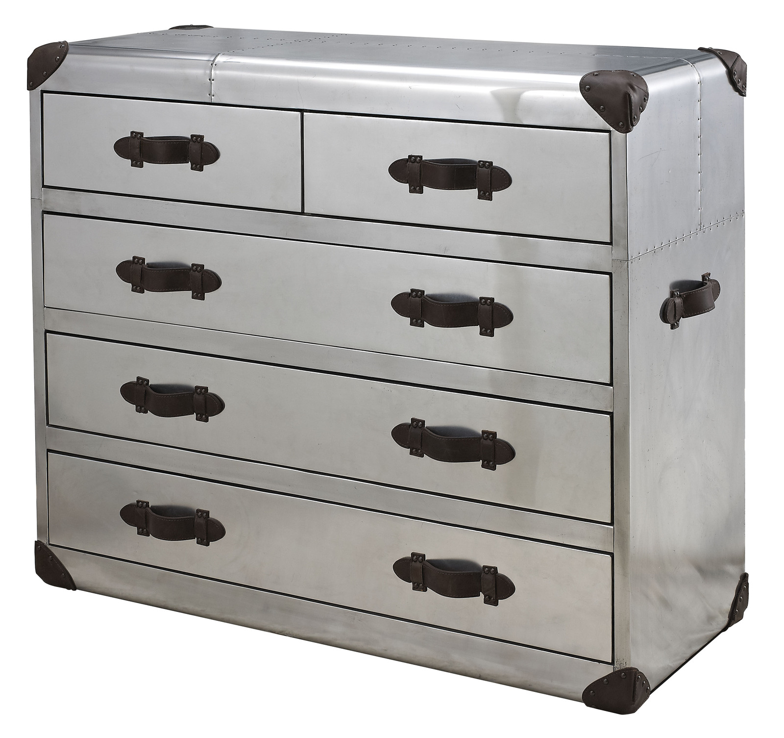 Entdecken Sie die einzigartige Kommode Anrichte Schrank Schubladen im Retro Vintage Flieger Flugzeug-Stil! Mit B2B Moebel erhalten Sie hochwertige Möbel aus Aluminium in markantem Design. Die Kommode misst ca. 120 cm in der Länge und ca. 100 cm in der Höhe, perfekt für Ihr Zuhause oder Büro. Bestellen Sie jetzt und holen Sie sich diesen einzigartigen Blickfang in wie abgebildeter Farbe nach Hause!