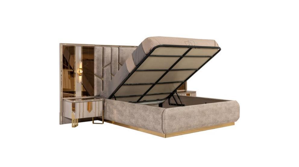 Schlafzimmer Doppelbett Garnitur Bett Nachttische 3tlg Beige Luxus