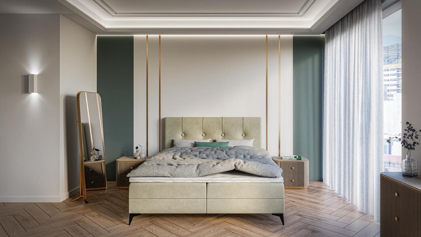 Bett Luxus Schlafzimmer Polstermöbel Design Doppelbett Stoff Boxspringbett