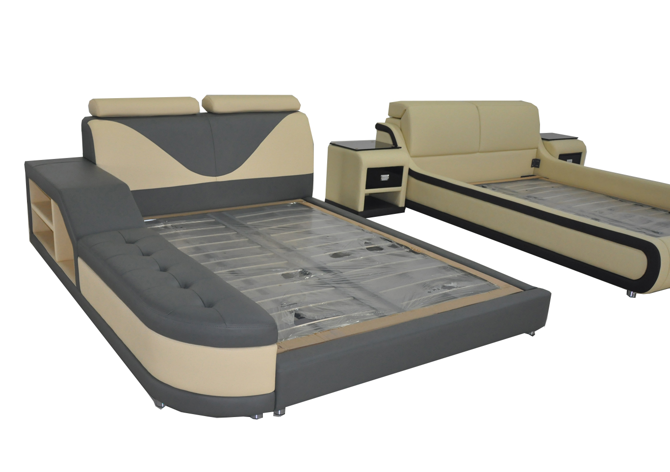 Design Multifunktion Bett XXL Big Betten Leder Hotel Polster 180x200 Regal USB