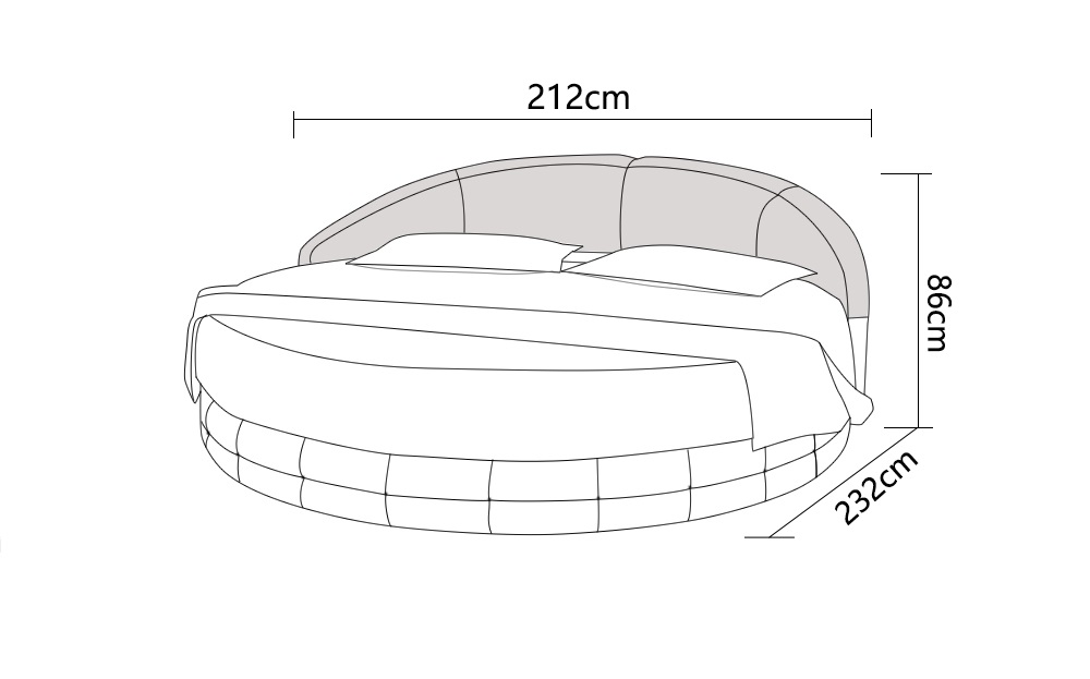 Entspannen Sie in purem Luxus mit unserem Design Rund Bett Polsterbett Luxusbett Doppelbett USB Betten Rundes! B2B Moebel bietet eine breite Auswahl an hochwertigen Betten, darunter auch dieses exklusive Modell. Das Bett besticht nicht nur durch sein elegantes Design, sondern auch durch seine erstklassige Qualität. Mit Maßen von ca. 212cm x 232cm x 86cm und einer großzügigen Matratzenaufliegefläche von ca. 200cm x 200cm bietet dieses Bett ausreichend Platz für erholsame Nächte. Die stabile Mittelstrebe sorgt für zusätzliche Stabilität, während das Bett sogar für Wasserbetten geeignet ist. Sie haben die Wahl zwischen verschiedenen Farben und Materialien, darunter Premium Kunstleder, Lederfaserstoff, Echtleder und Textilstoff. Entscheiden Sie sich für das Material, das am besten zu Ihrem Einrichtungsstil passt und verwandeln Sie Ihr Schlafzimmer in eine wahre Wohlfühloase. Hergestellt aus hochwertigen Materialien wie echtem Holz und italienischem Rindsleder, garantiert dieses Luxusbett Langlebigkeit und Komfort. Gönnen Sie sich erholsame Nächte und ein stilvolles Ambiente mit unserem Design Rund Bett Polsterbett Luxusbett Doppelbett USB Betten Rundes - jetzt erhältlich in unserem Online-Shop!