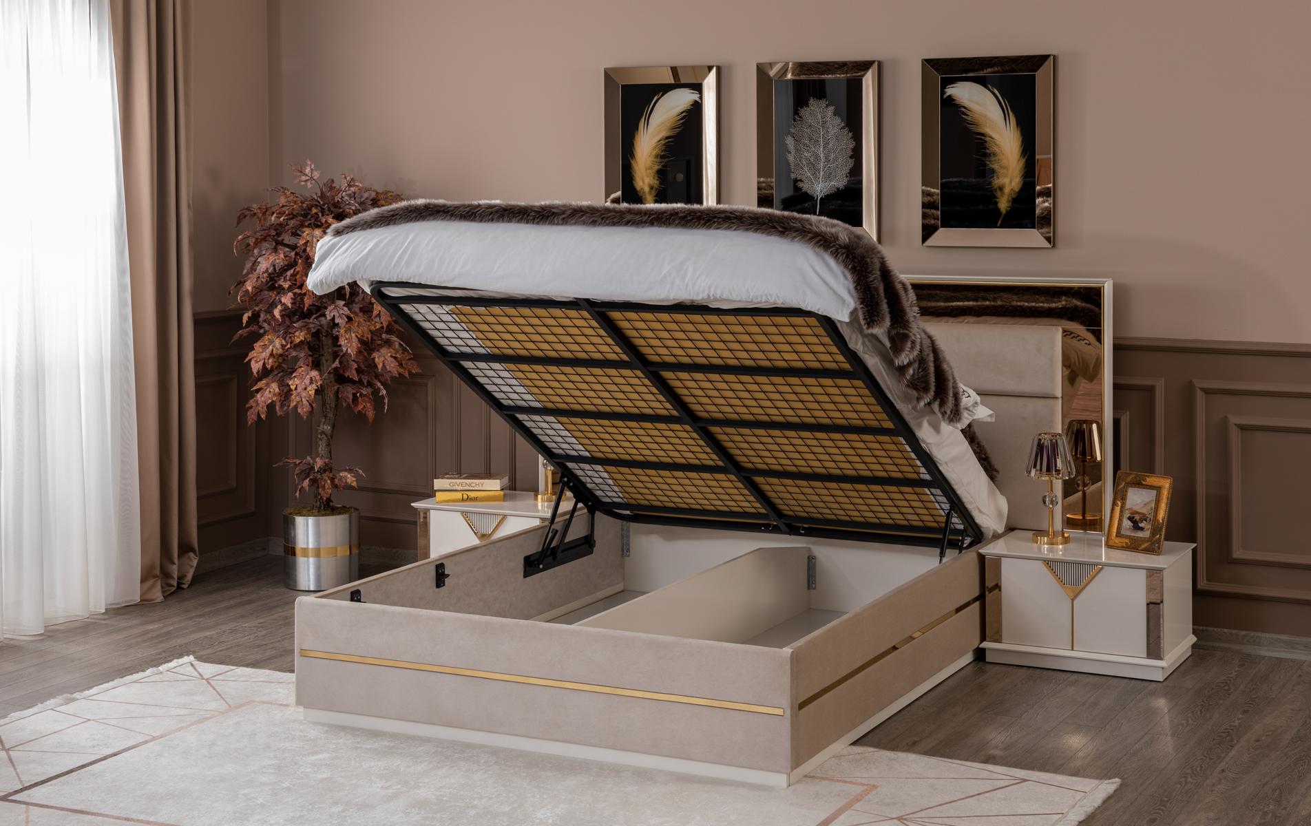Goldenes Bett Doppelbett Schlafzimmer Betten Möbel designer Doppelbett Beige