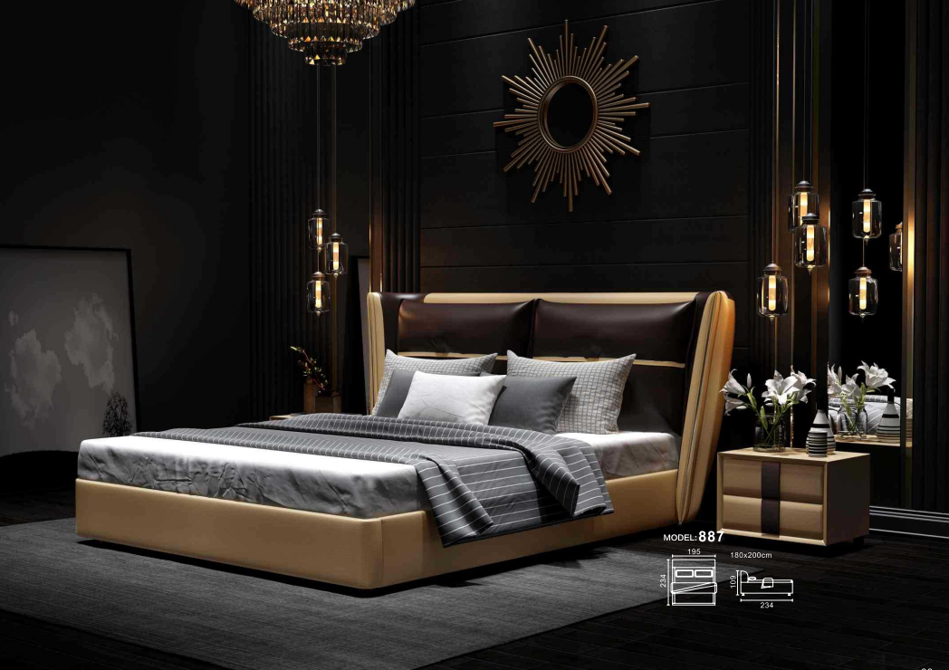 Willkommen in unserem B2B Moebel Online-Shop! Hier präsentieren wir Ihnen unser Luxus Designer Hotel Bett für Ihr Schlafzimmer. Mit seinen großzügigen Maßen von ca. 234cm x 195cm x 109cm und der Matratzenaufliegefläche von ca. 180cm x 200cm bietet dieses Polsterbett den perfekten Ort für erholsame Nächte. Das Besondere an unserem Designer Bett ist die freie Farbwahl, damit es ideal zu Ihrem Raumkonzept passt. Optional können Sie zwischen verschiedenen Premium Materialien wählen: Premium Kunstleder, Premium Lederfaserstoff (70% Leder / 30% Polyester), Premium Echtleder oder Premium Textilstoff. Tauchen Sie ein in Luxus und Komfort mit unserem Designer Hotel Bett - ein traumhaftes Möbelstück für Ihr Zuhause. Gönnen Sie sich erholsame Nächte und ein stilvolles Schlafzimmerambiente. Bestellen Sie jetzt Ihr Traumbett bei B2B Moebel!