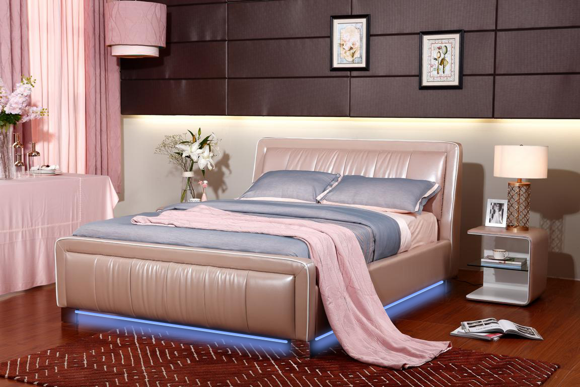 Designer Doppelbett Bett Betten Schlafzimmer Leder Hotel Luxus Polster