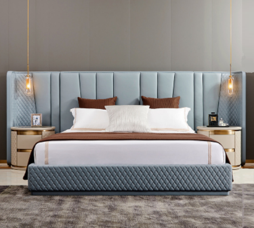 Großes Schlafzimmer Doppelbett Designer Betten Holzgestell Polsterbett