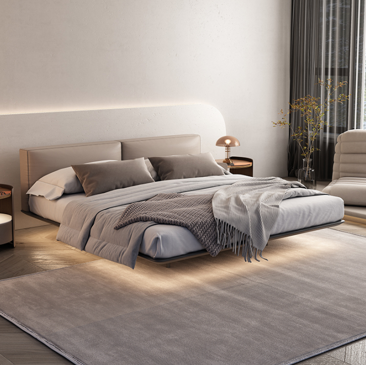 Hellgraues Schlafzimmer Bett Doppelbetten Luxuriöse Betten Holzgestell