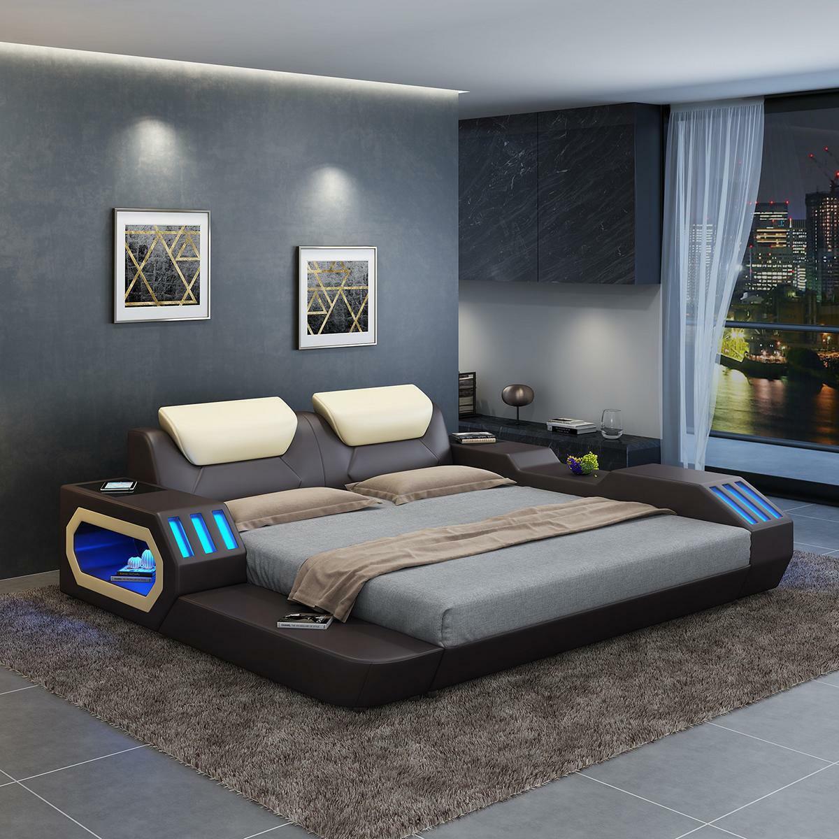 Luxus Design Bettgestell Bett Leder Betten USB luxus Doppel Hotel Polsterbett