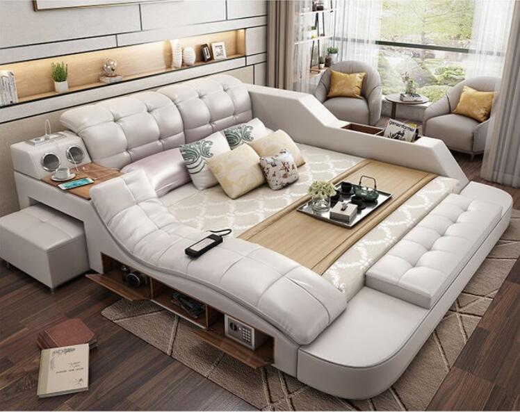 Multifunktion Design Bett XXL 180x200 Big Betten Leder Hotel Regal USB
