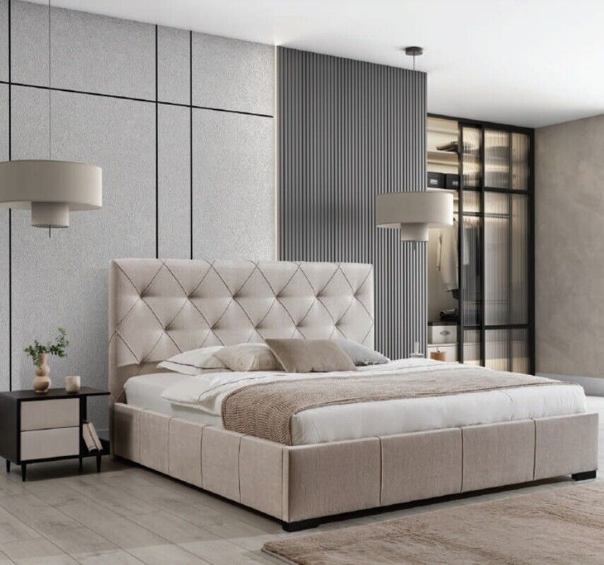 Luxuriöses Polsterbett Hohes Kopfteil Schlafzimmer Einrichtung