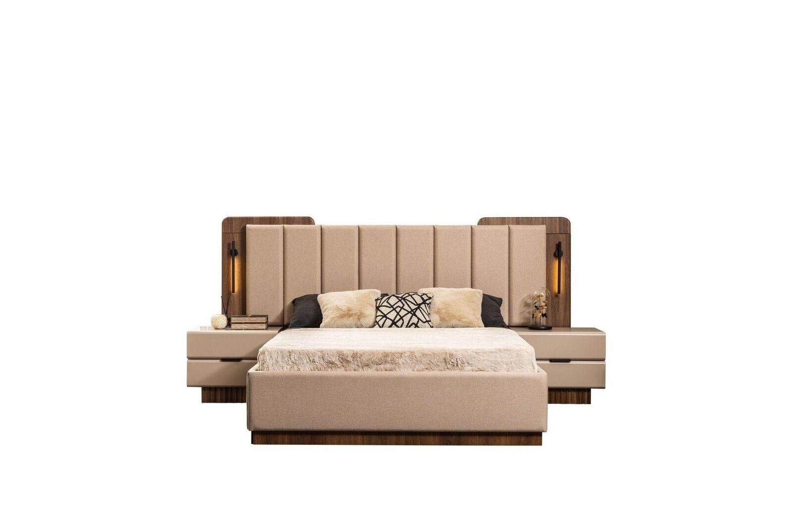 Luxus Doppelbett Garnitur Schlafzimmer Nachttische 4tlg Beige Schrank