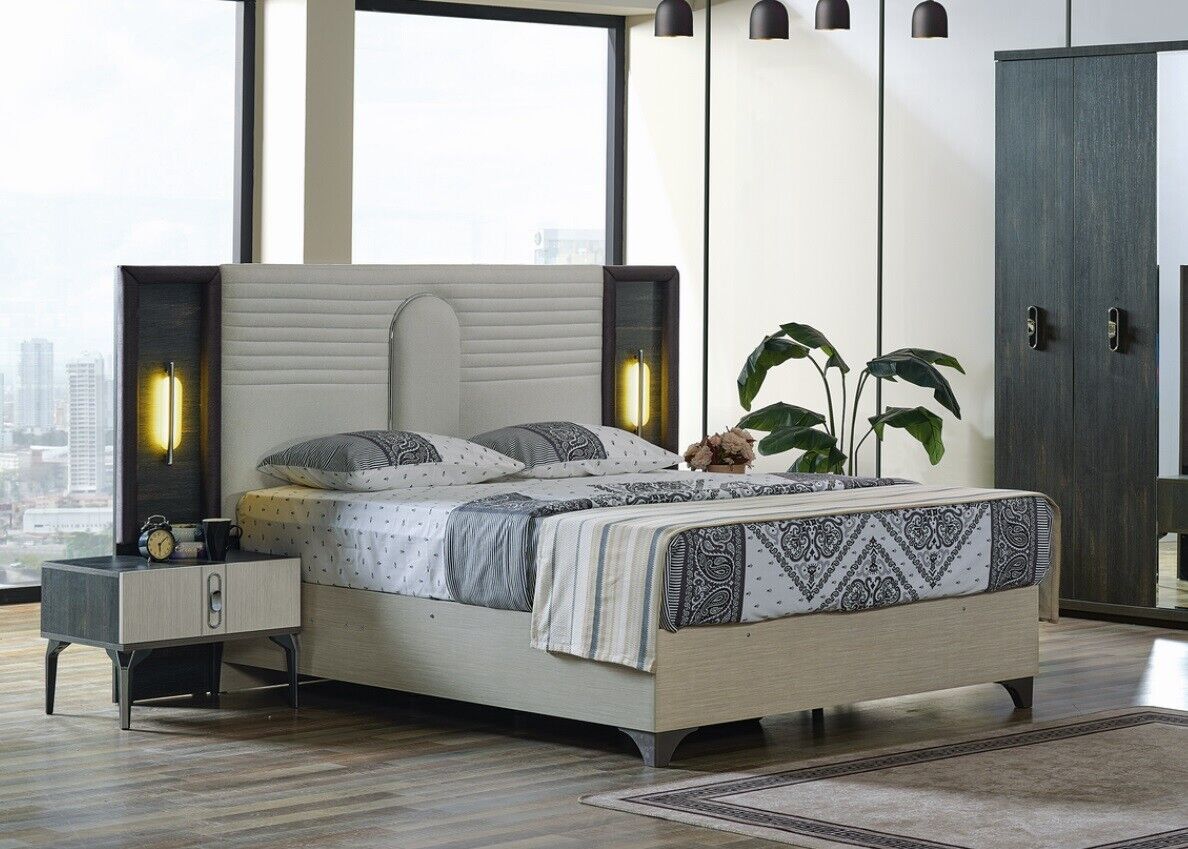 Luxus Schlafzimmer Set 4 tlg. Bett 2x Nachttische Kleiderschrank Beige
