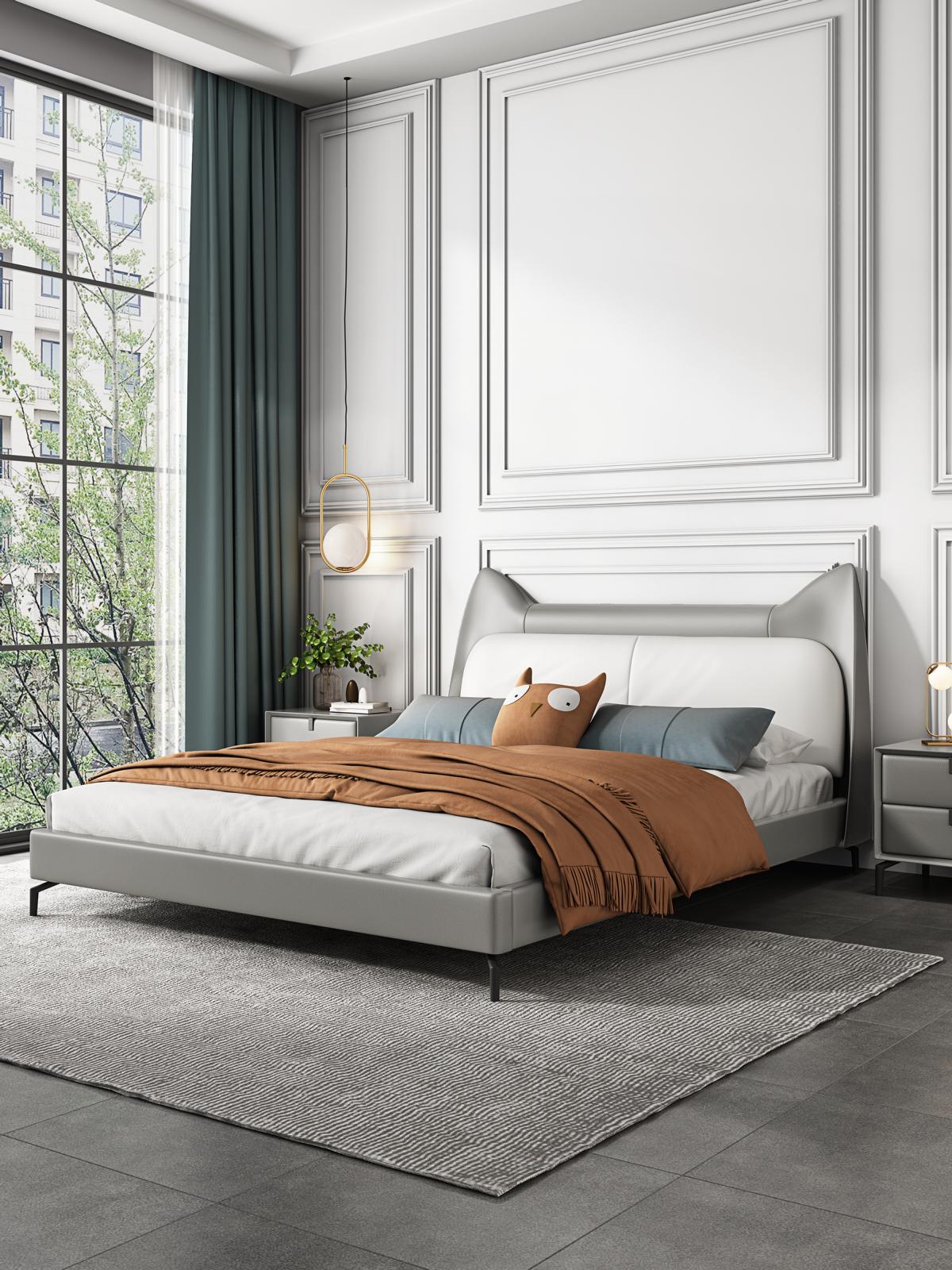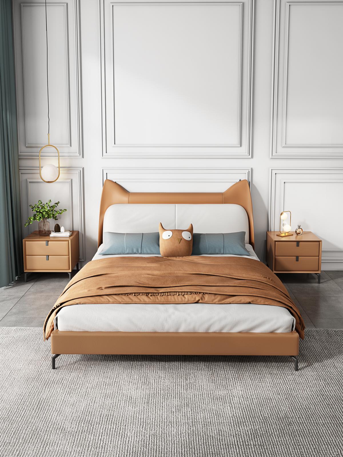 Modernes Hotel Leder Stoff Doppelbett 160x200cm Designer Bett Doppel