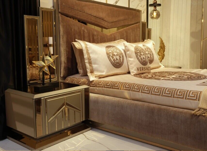 Luxus Nachttische Konsolen Beistelltisch Holz Möbel Schlafzimmer Gold Metall Neu