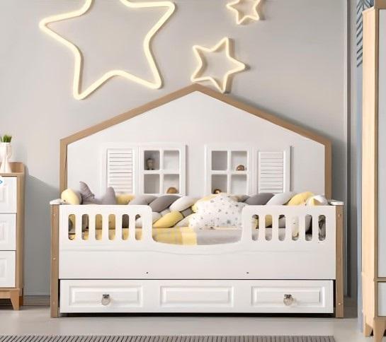 Entdecken Sie den perfekten Bettrahmen für das Kinderzimmer! Dieser Bettrahmen aus hellem Holz ist ein echter Hingucker und eine tolle Neuheit in unserem Sortiment. Mit Maßen von ca. 98 x 200 x 162 cm bietet das Bett eine Liegefläche von ca. 90 x 190 cm, ideal für Ihr Kind. Das hochwertige Material aus Holz und Textil sorgt für Stabilität und Komfort. Holen Sie sich jetzt dieses Kinderzimmermöbel von B2B Moebel und komplettieren Sie das Zimmer Ihres Kindes!