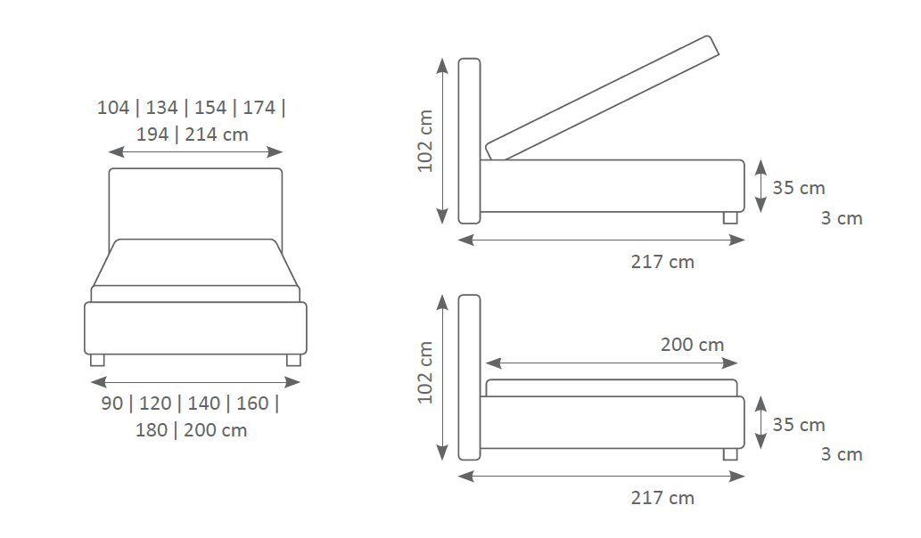 ca. 90/120/140/160/180 x 200 cm