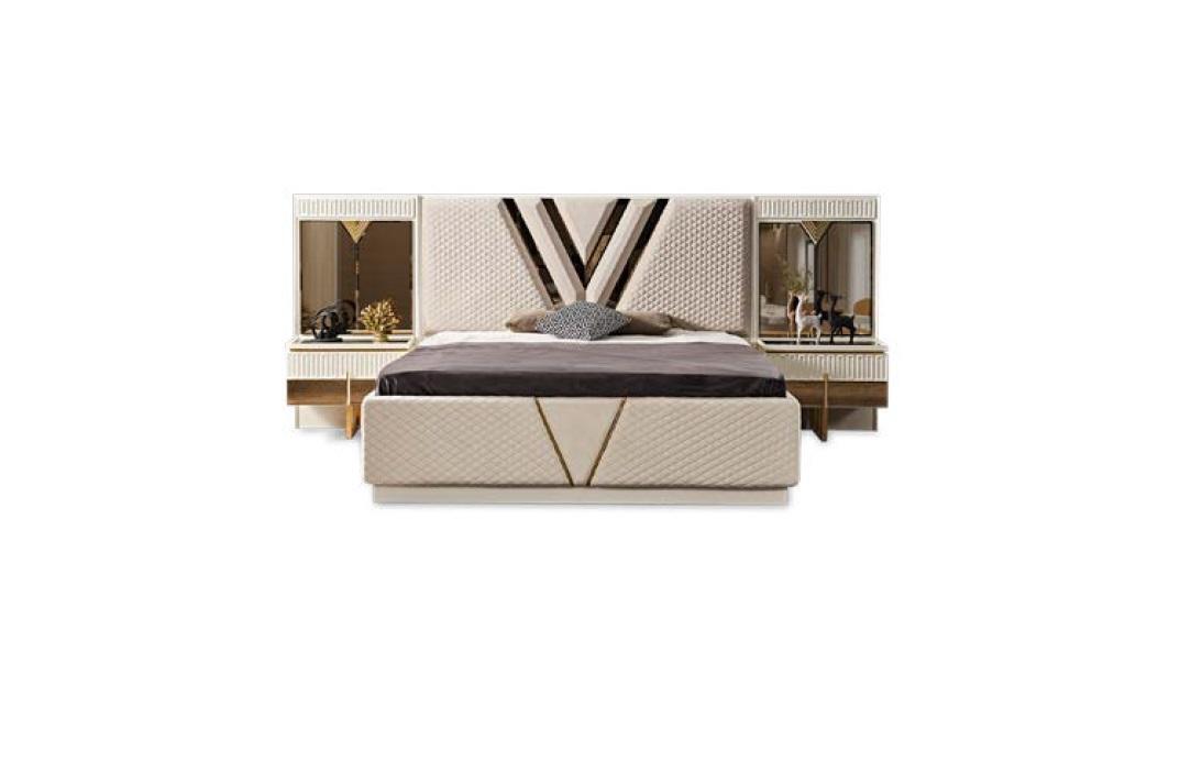 Schlafzimmer 4 tlg.Set Polster Bett 2x Nachttische Kleiderschrank Luxus
