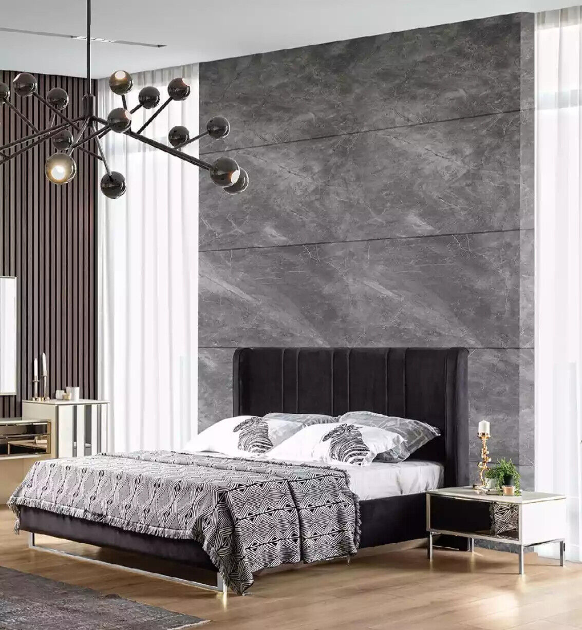 modernes Bett, Bett mit zwei Nachttischen