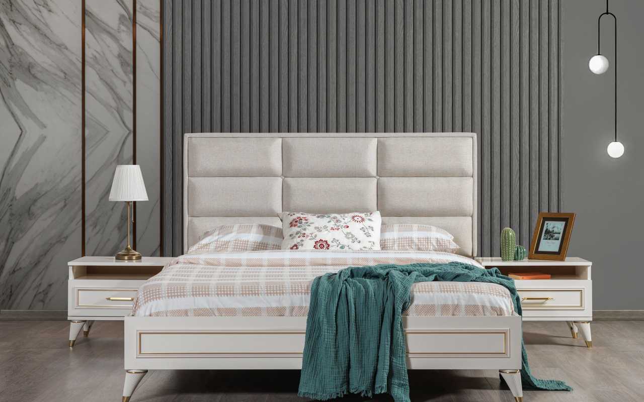 Schlafzimmermöbel, Doppelbett, Betten, Nachttische, Hocker
