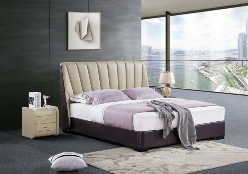Schlafzimmer Lederbett Komplettes Bett 3 tlg. Garnitur Hotel Sets Nachttischen.