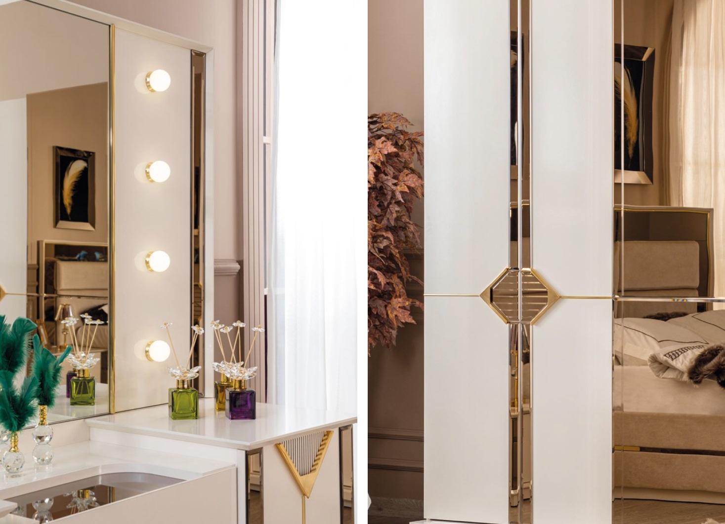 Entdecken Sie das moderne 4-teilige Schlafzimmer-Set "Modern Bett 2x Nachttische" von B2B Moebel! Dieses luxuriöse Design-Ensemble besteht aus einem stilvollen Bett, zwei eleganten Nachttischen und einem Schminktisch mit Spiegel. Mit den Maßen des Bettes von ca. 238 x 220 x 113 cm und einer Liegefläche von ca. 180 x 200 cm bietet dieses Set sowohl Komfort als auch Eleganz. Die Nachttische mit den Maßen ca. 65 x 44 x 40 cm und der Schminktisch mit Spiegel in ca. 114 x 46 x 170 cm vervollständigen das traumhafte Set. Hergestellt aus hochwertigem Holz, Glas und Textil in der abgebildeten Farbe passt dieses Schlafzimmer-Set perfekt in modern eingerichtete Räume. Bringen Sie Luxus und Stil in Ihr Zuhause mit dem "Modern Bett 2x Nachttische" Set!
